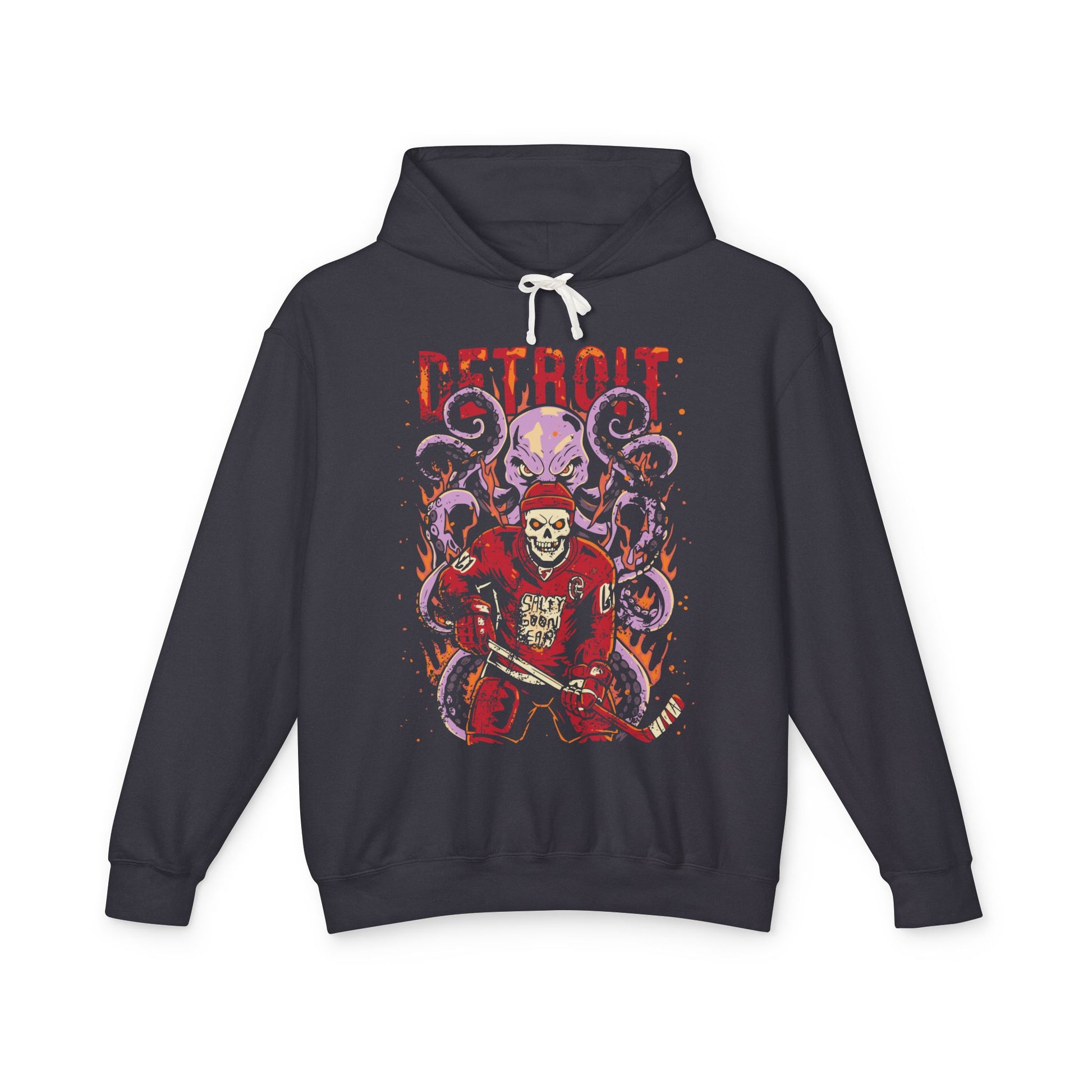 Forged in Motor City grit, the Red Line Reaper stands ready at center ice a skull-faced captain backed by the legendary octopus rising from the depths.